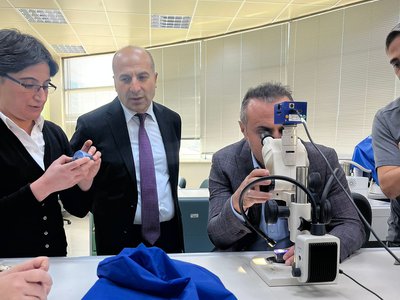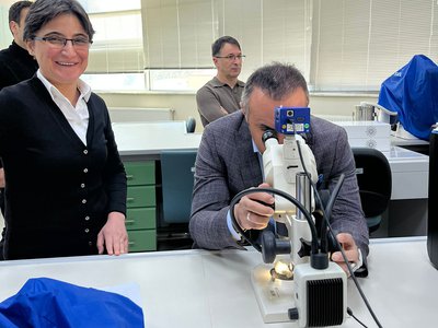 Gümüşhane Üniversitesi Rektörü Prof. Dr. Oktay YILDIZ, Merkez Araştırma Laboratuvarı Uygulama ve Araştırma Merkezi’ni ziyaret ederek GÜ-MERLAB Müdürü Prof. Dr. Duygu ÖZDEŞ, akademik ve idari personel ile birlikte laboratuvarlarda incelemelerde bulundu. GÜ-MERLAB Müdürü Prof. Dr. Duygu ÖZDEŞ'ten GÜ-MERLAB'ın mevcut durumu, altyapısı ve sürdürülen projelerle ilgili bilgi aldı.
